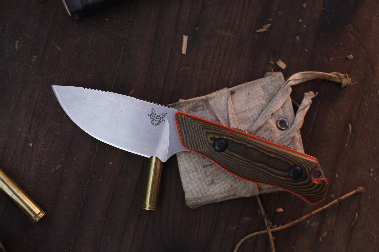 The Hidden Canyon Hunter was a massive hit, and Benchmade upgraded the design with improved ergonomics, added jimping along the spine, and a premium Boltaron sheath. The blade is made from CPM-S90V stainless steel, and the handle has Richlite scales with orange G-10 base layers.